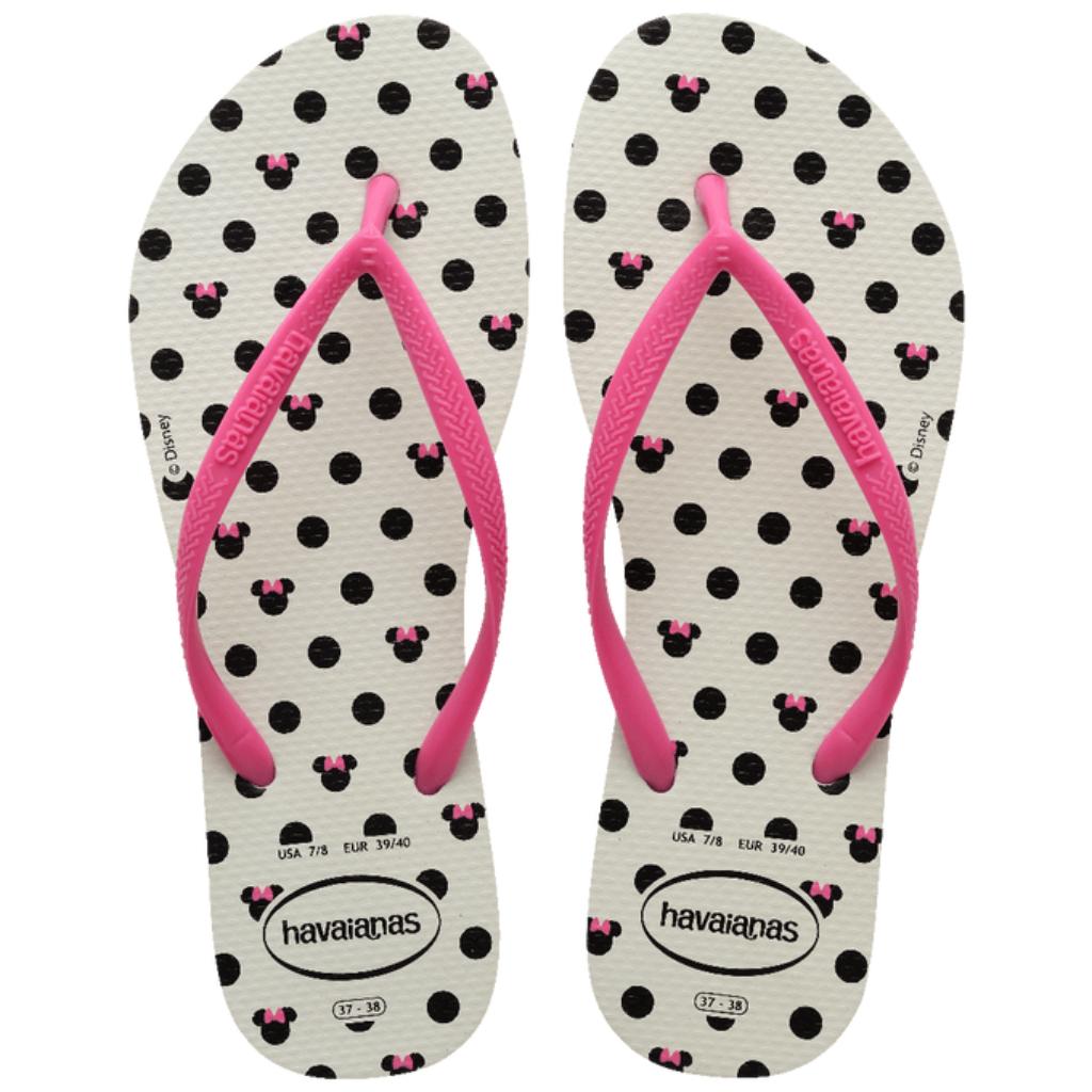 As bolinhas que Minnie Mouse tanto ama dão o clima retrô destas Havaianas, enquanto a paleta de cores traz a moda diretamente para a modernidade.