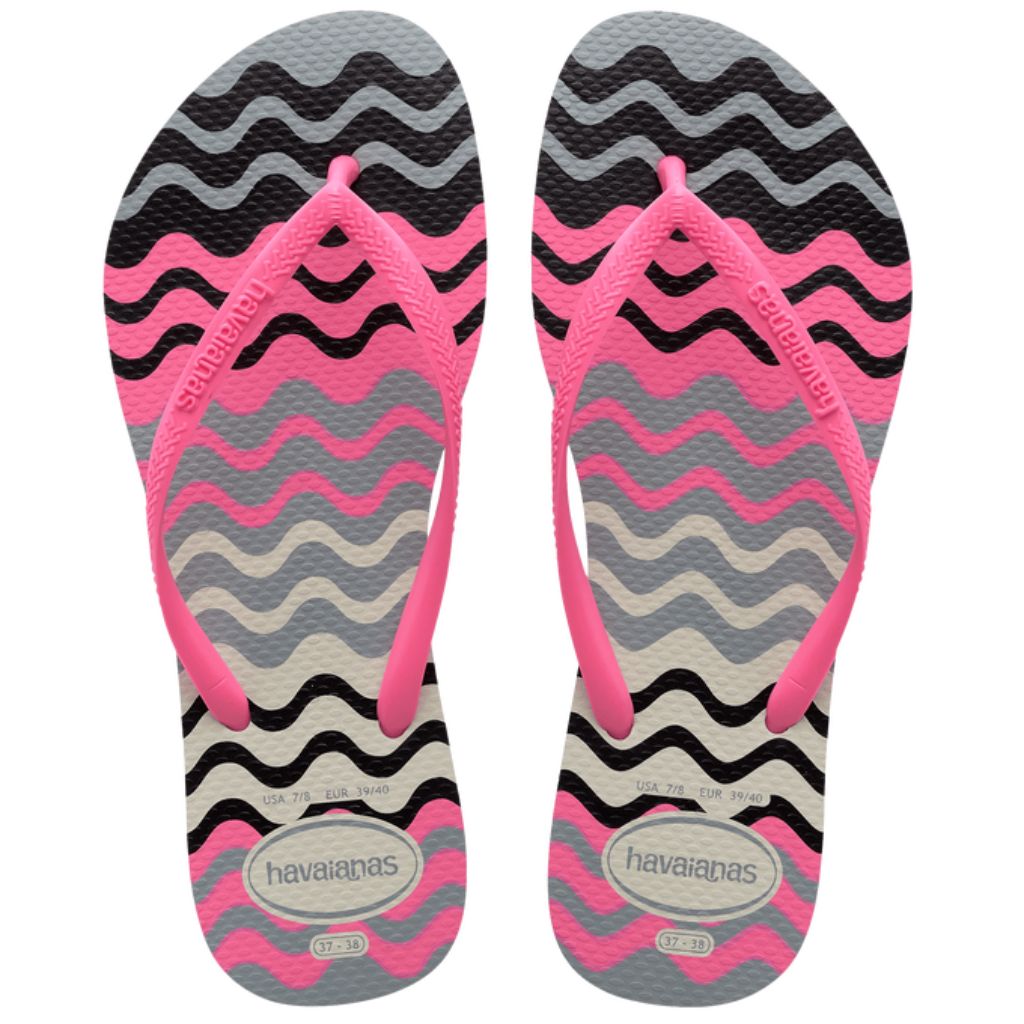 Tiras fininhas e coloridas, shape “Slim” e estampa alegre de ondinhas, essa é a fórmula infalível da Havaianas Slim Harmony, que tem cara de verão e cores vibrantes.