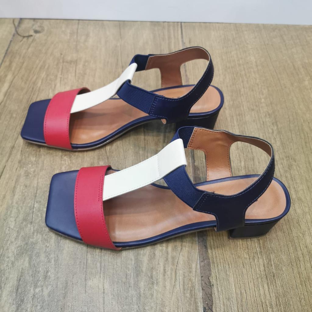Sandália em couro legítimo, com palmilha acolchoada e salto bloco em formato H com elástico.