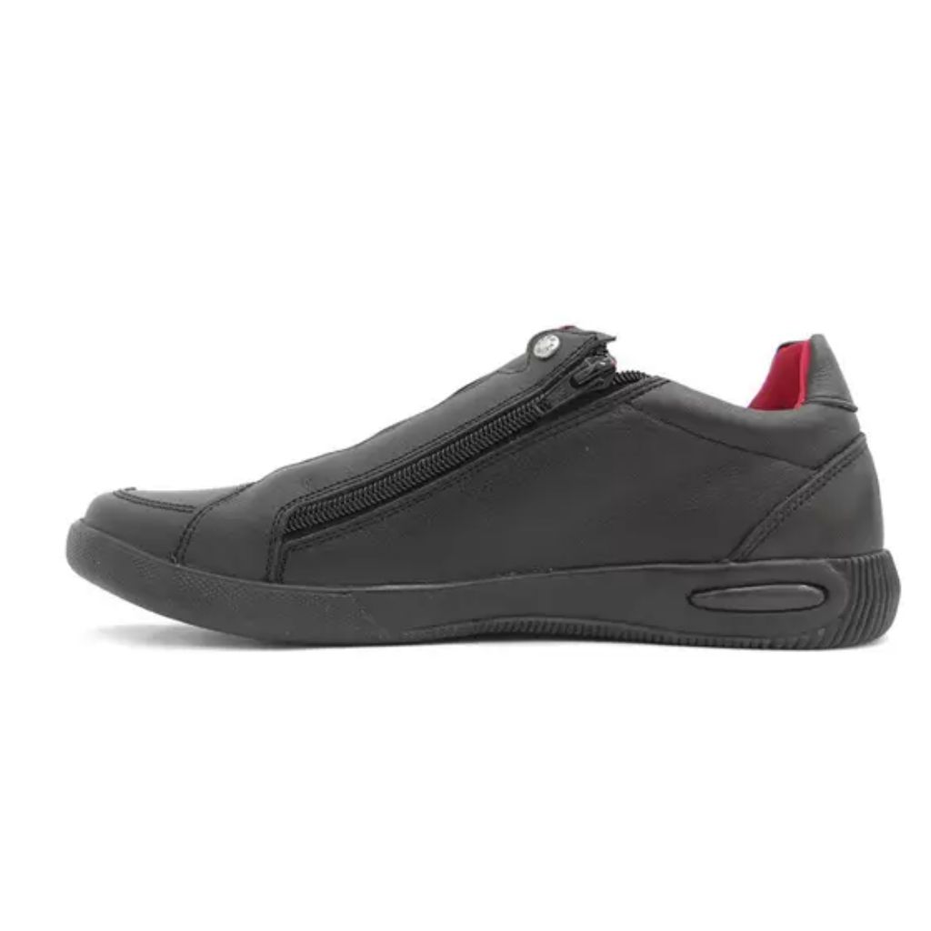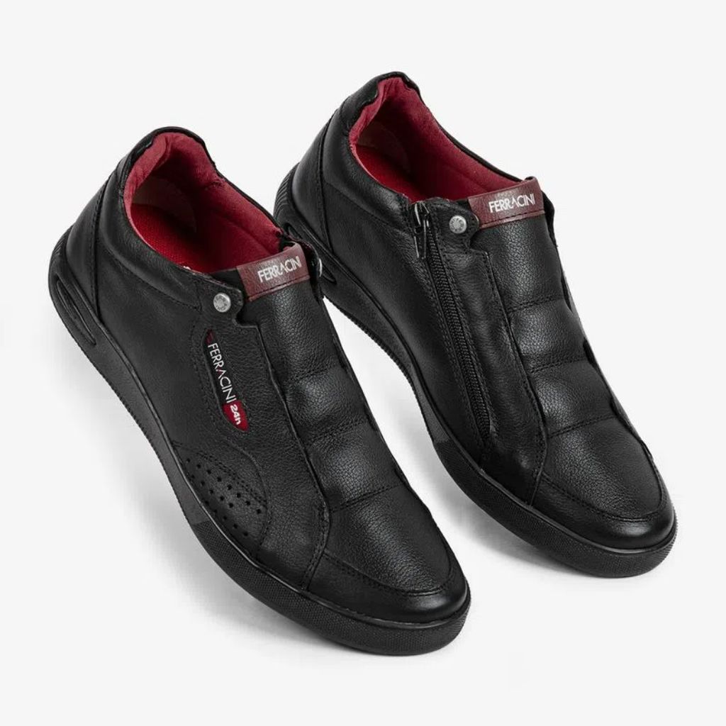 O Sapatênis da Ferracini em couro é excelente para usar no seu dia-a-dia de trabalho ou com um look bem casual. Seu fechamento é sem cadarço o que permite um ajuste por elástico e para o pé entrar melhor no sapatênis existe a abertura por zipper.